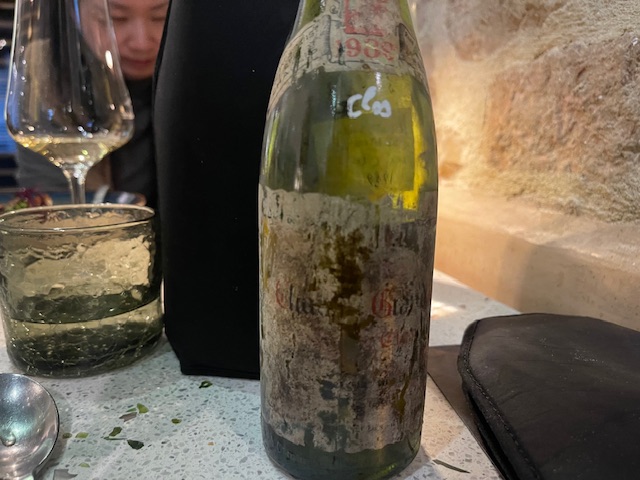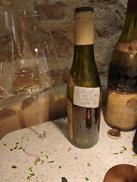 The Vincent Dauvissat Les Clos 1989 was a half bottle … 0.375ml … of intense complexity. Starting out with full-blown mature Chablis acidity and notes of acacia with quite a lot of Coffee notes. Classic big and burly with the powerful intensity of the 1989 vintage taking charge and the winehog by the wing. Almost too powerful in the beginning, it started to add layers and layers of complexity with the acidity and coffee beans integration into the midplate, adding even more complexity. Notes of chalky base, rich white and yellow floral notes … hazelnuts, candied fruit and almonds exploding in the mouth … what a complexity and length equite easily surpassing other Chablis I have tasted. Greatness … wow